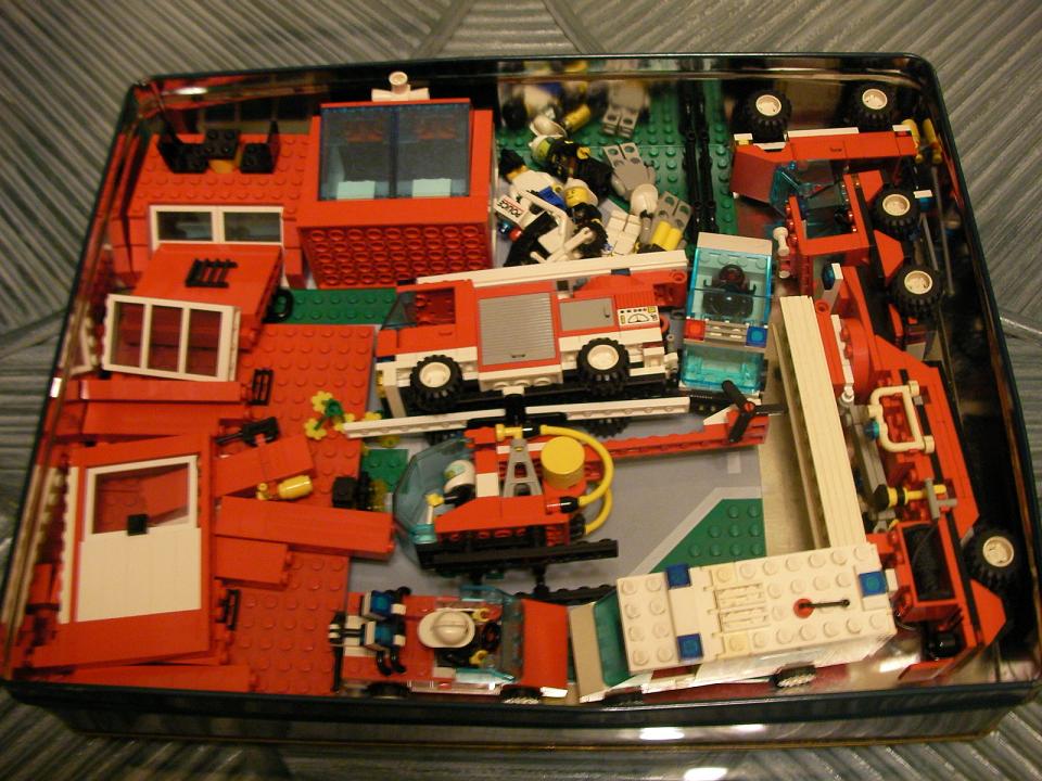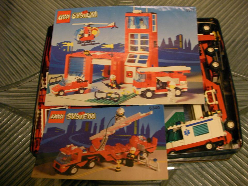 看到我在看一組消防車(鐵盒右邊那台)