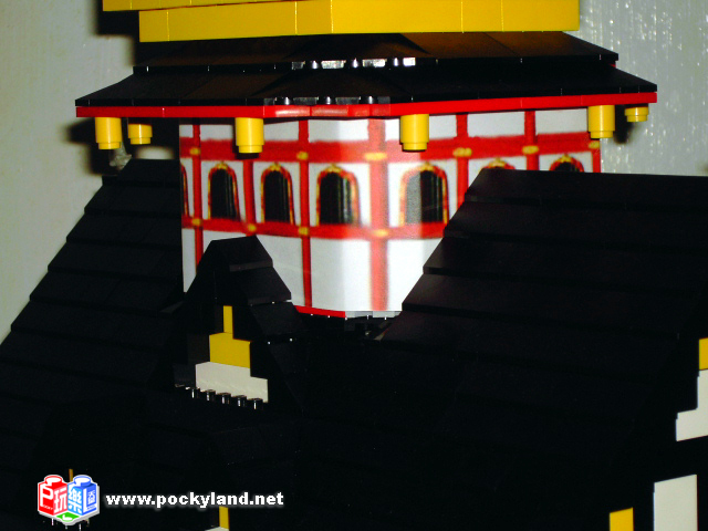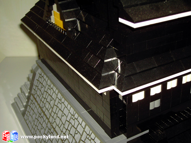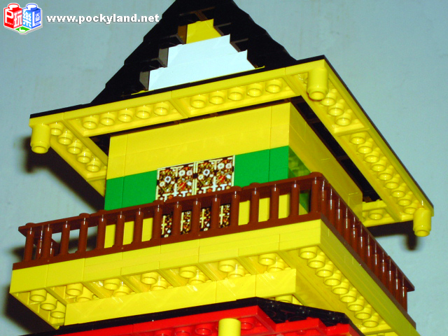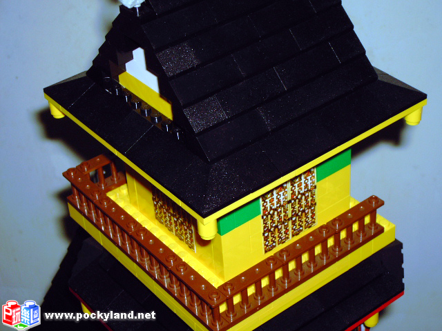 右側的上半部特寫,可以發現各層屋簷突出的地方都是不對稱的