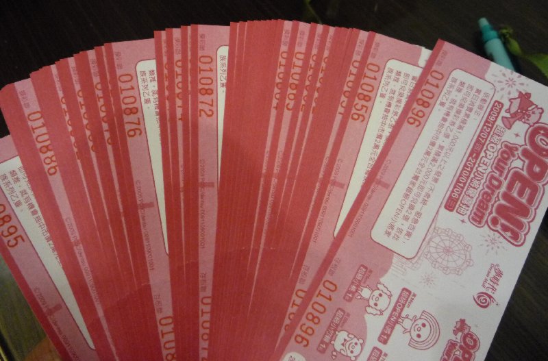 摸彩卷,滿一千有一張,拿了快50張..收穫真的很豐富啊..(買了一大堆人偶包,鑰匙圈)