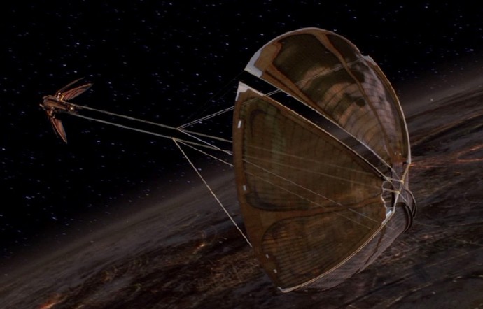 這艘種子形(或者說蟬形)飛船有一個被外殼夾在中間的氣泡狀駕駛艙,裡面安置著飛船的機器人駕駛員FA-4。飛船的外殼可以打開,釋放出透明的太陽帆。太陽帆張開成拋物線形的傘,以便收集能量粒子推進飛船。