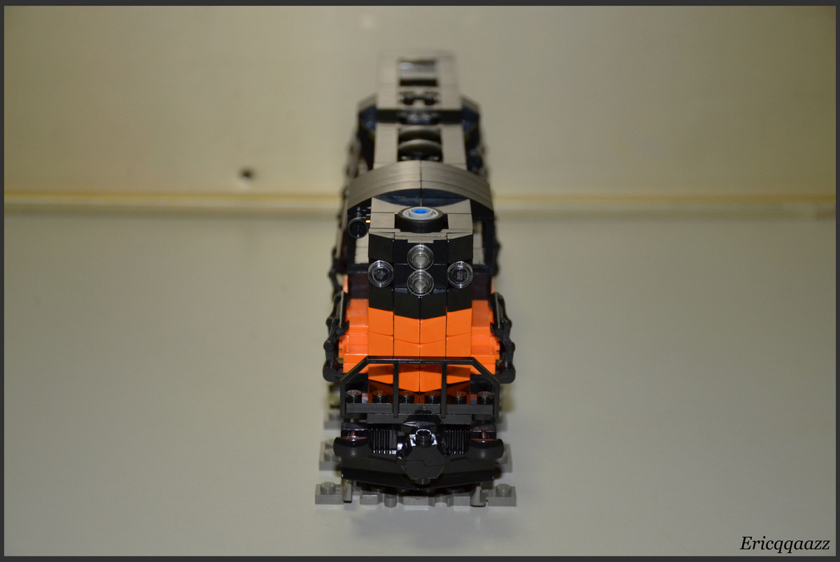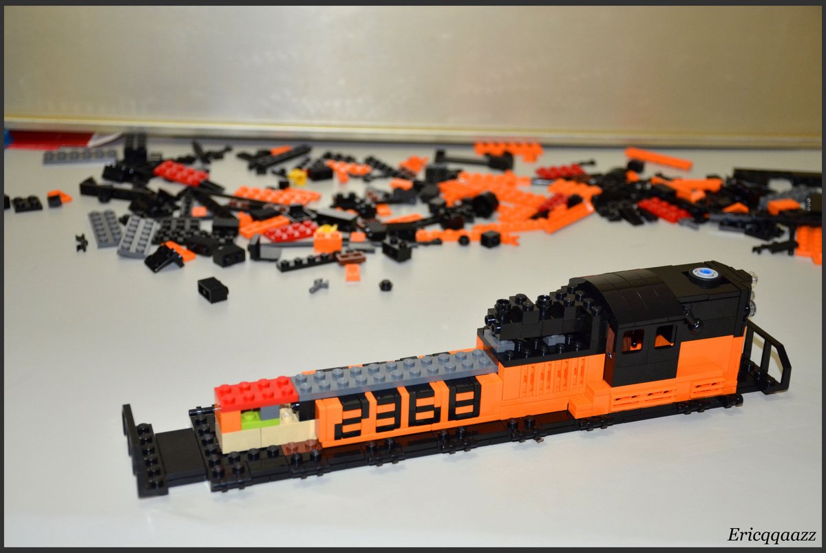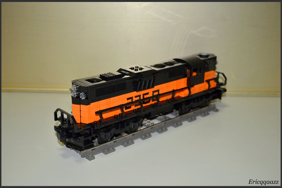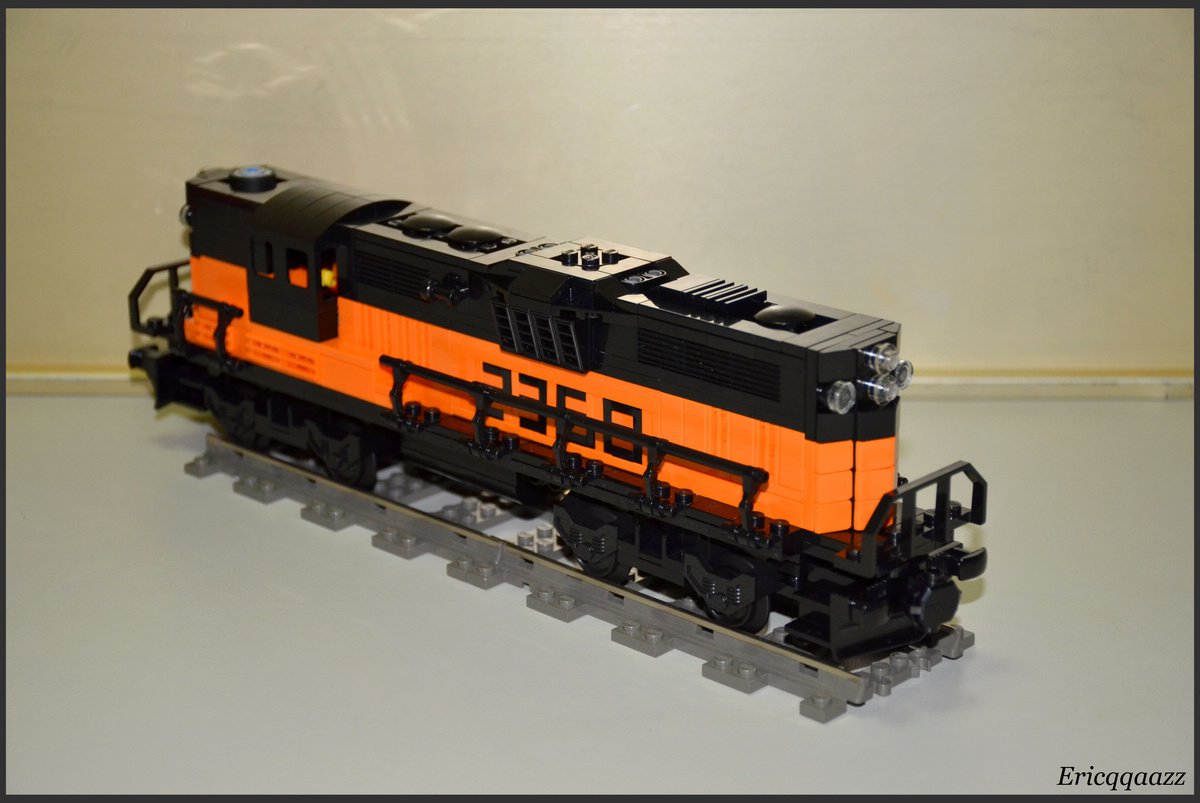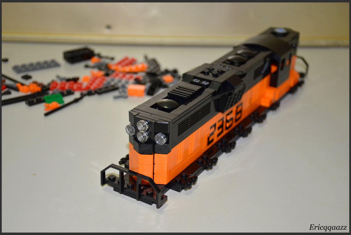 這次拼的是EMD GP9的火車頭. 這是一款四軸的柴油火車頭, 建造於上世紀50年代的美國. 該系列有2個版本, 分別是有駕駛艙版和無駕駛艙版. 無駕駛艙的純粹是為了重聯使用, 以提高輸出動力. 而我這次MOC的是有駕駛艙版, 並且是橙黑塗裝的.(橙色控, 無解了) 車身代碼是2368.