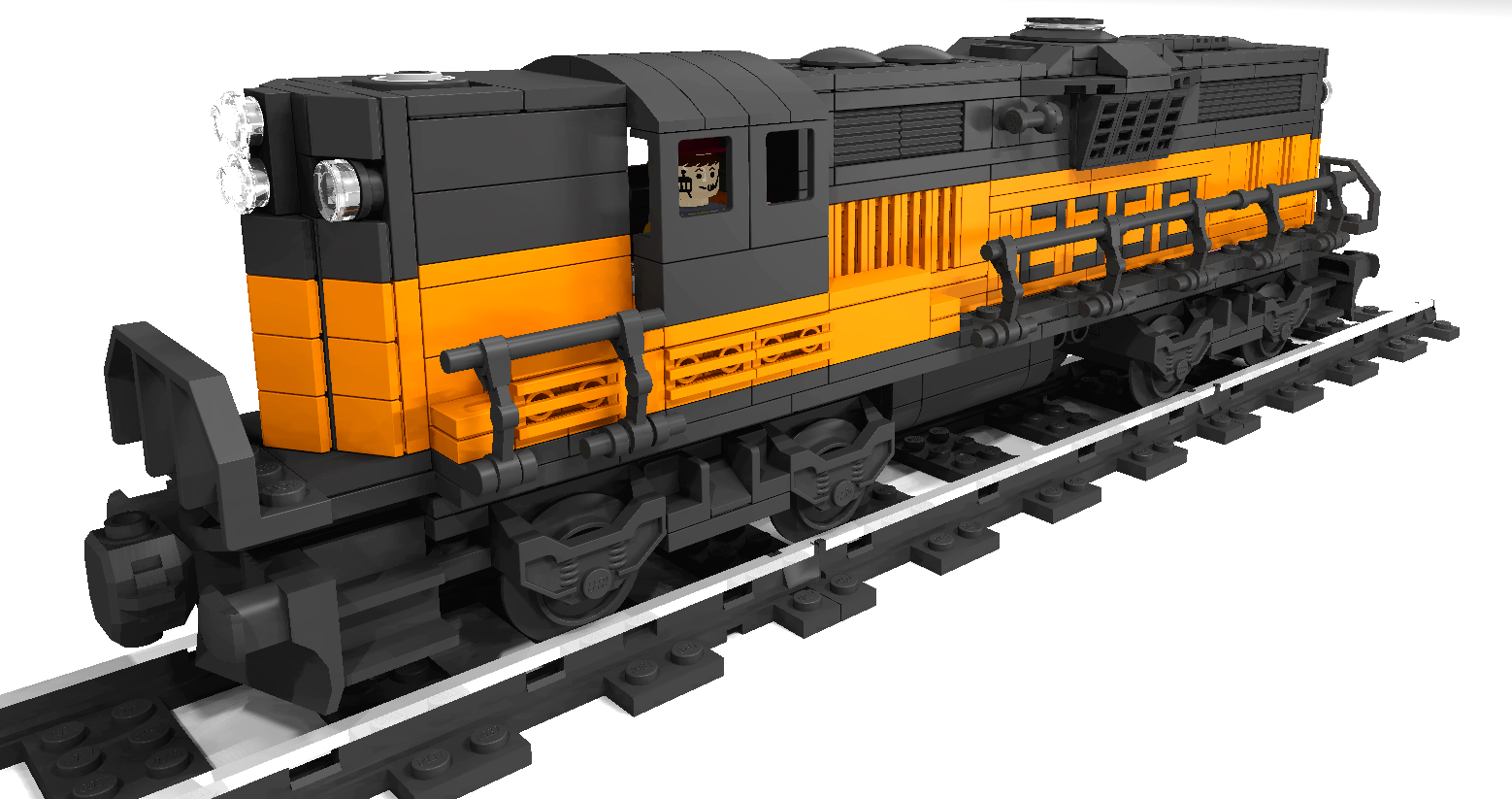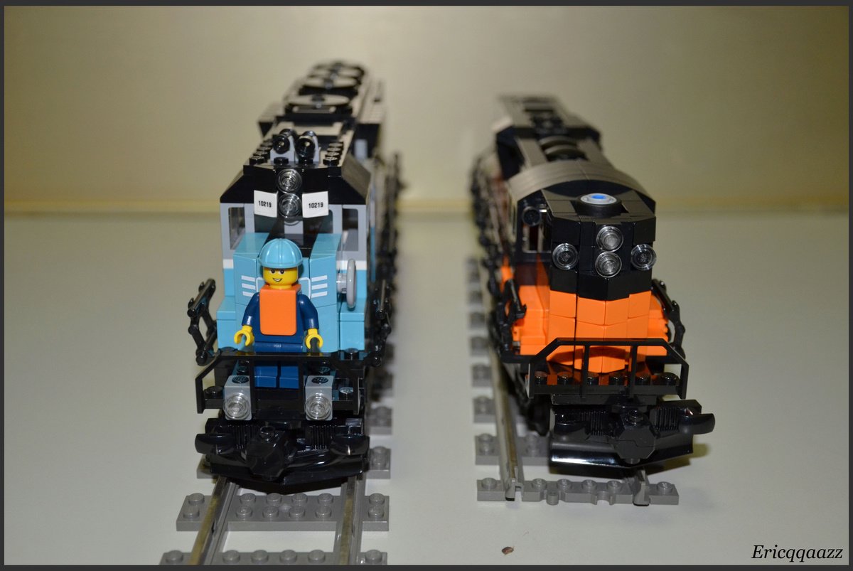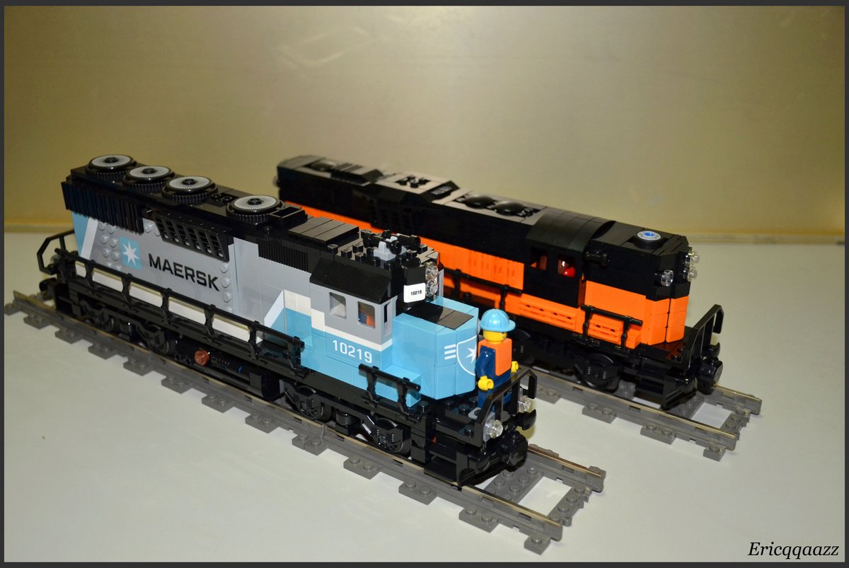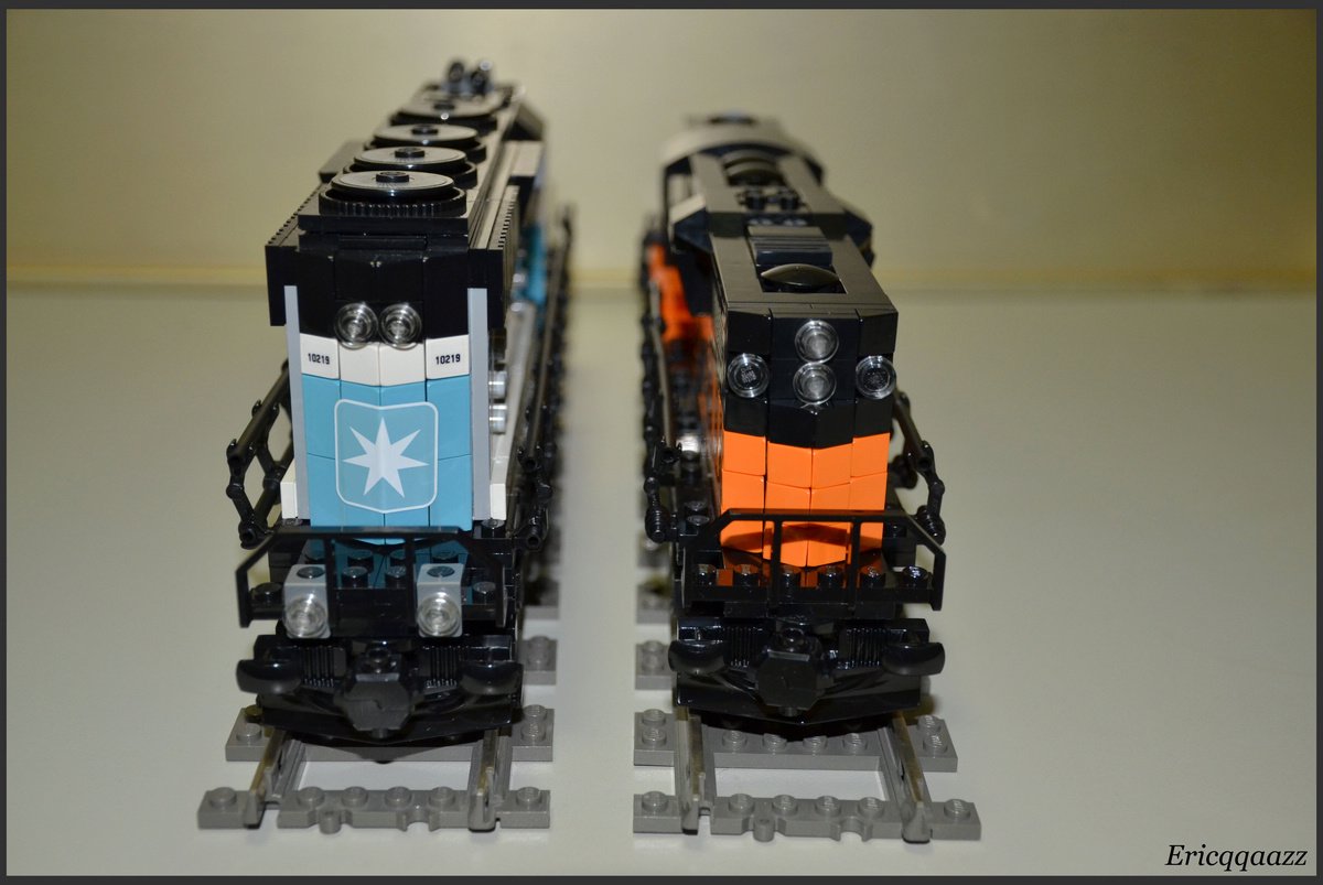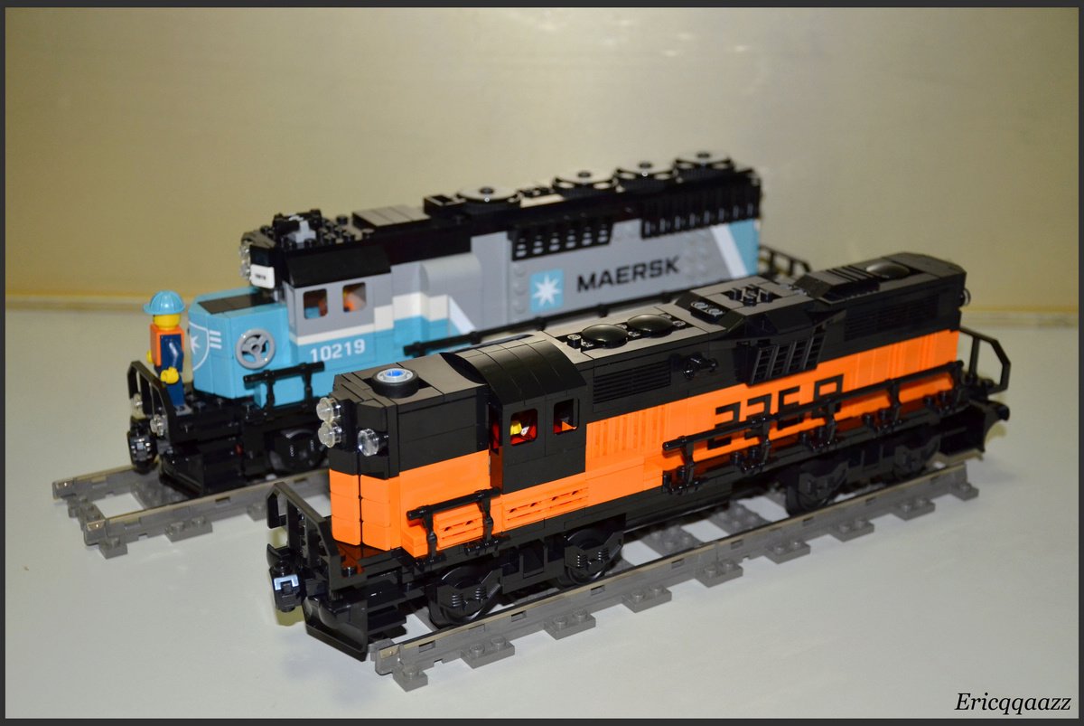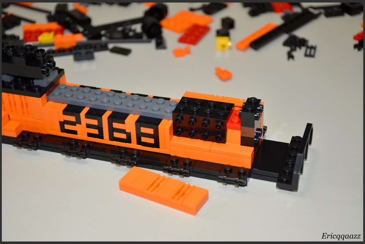這次拼的是EMD GP9的火車頭. 這是一款四軸的柴油火車頭, 建造於上世紀50年代的美國. 該系列有2個版本, 分別是有駕駛艙版和無駕駛艙版. 無駕駛艙的純粹是為了重聯使用, 以提高輸出動力. 而我這次MOC的是有駕駛艙版, 並且是橙黑塗裝的.(橙色控, 無解了) 車身代碼是2368.