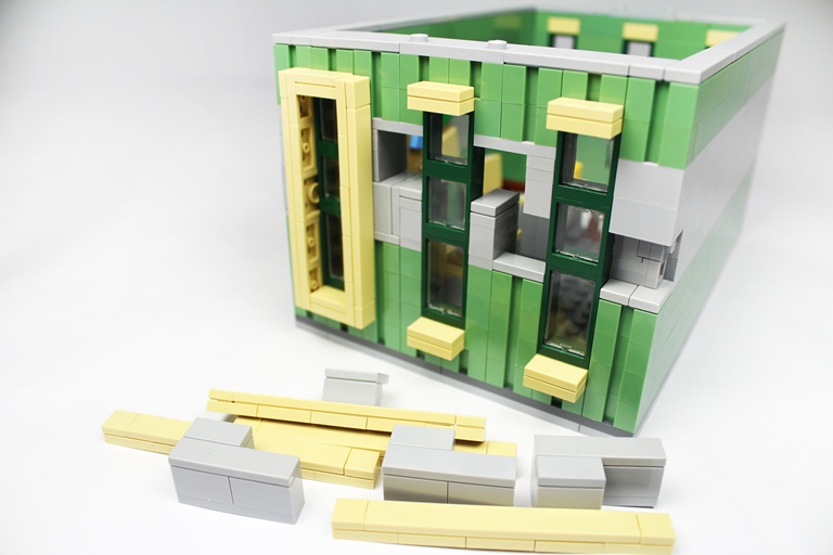 當初這面牆卡了一整天 因為沙綠色很少轉折零件