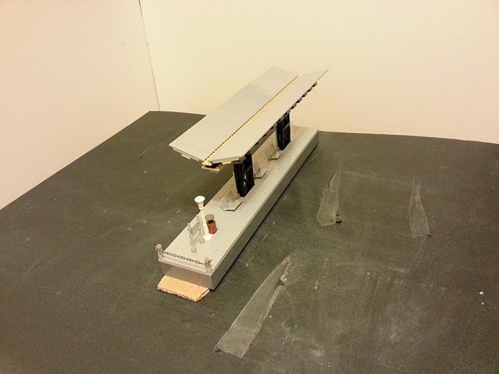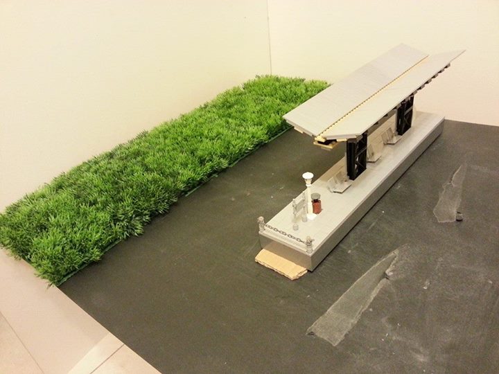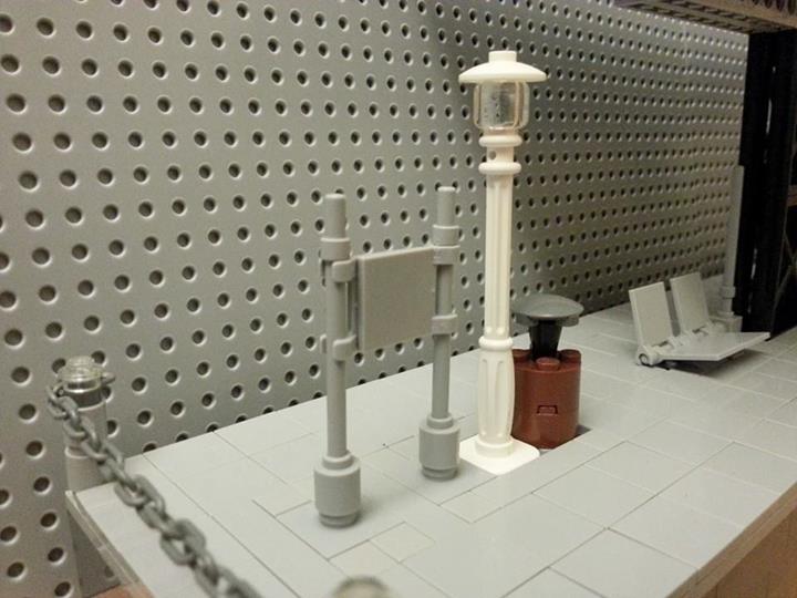 ▼細部物件還沒擺上之前,我用樂高的黑絲來作電桿拉線