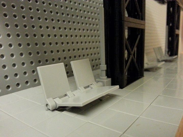 ▼車站以灰色調為主,內部用2X4磚作打底兼最上層地板連結