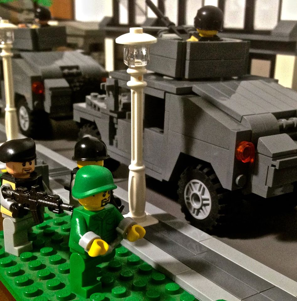 佔領後則由我軍一般部隊(土色制服)派出士兵隨同悍馬車隊進入管理佔領區以及補給前線