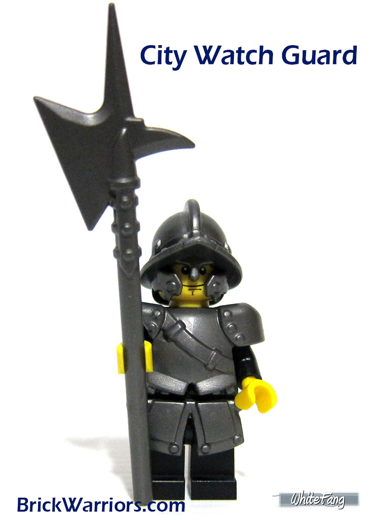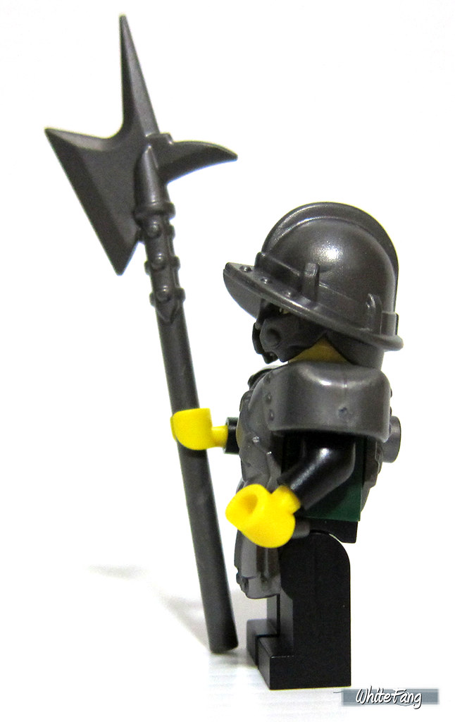 BrickWarriors founder, Ryan has indeed done an excellent job to make these parts to fit one another to complement it well through a series of steel colour looking of city watch helmet, armour, tassets and halberd. These suit well in darker minifigure torso and I used the quite recent Green Dragon Guard as the test subject. I am very fond of the armour especially with the belt sash. The left of the armour is also much thicker even though it restrict the arm movement but I find it very nicely done. Not too odd at all.