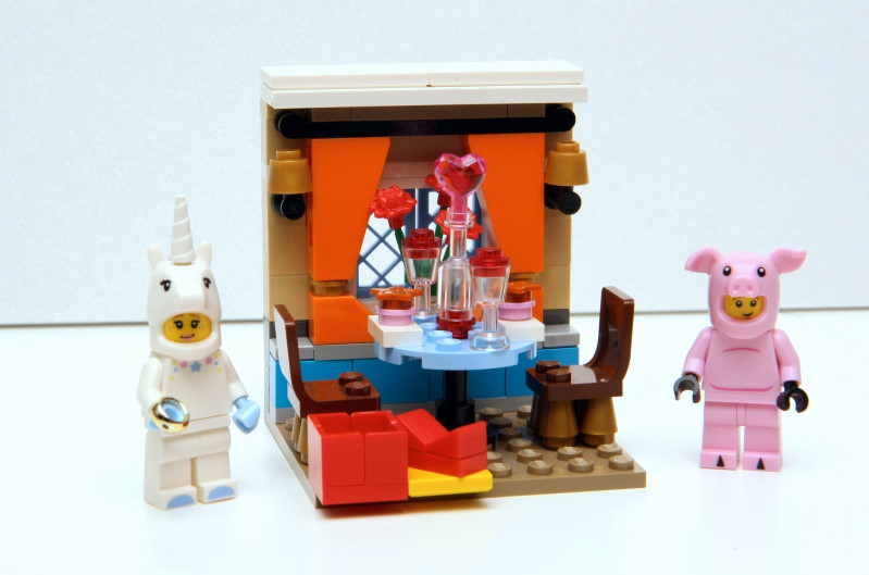 這個餐廳場景很好用,人偶可以換成各個樂高情侶黨,小樂就說超人、蝙蝠俠、鋼鐵人還有艾密特都可以帶他們的女朋友來。