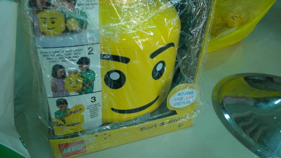 ▼我想殺來當安全帽,只是要加工將分類樂高箱底部挖空才行XD