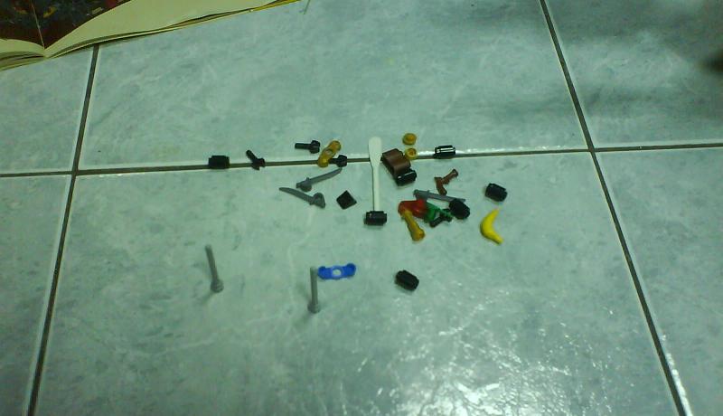 站在前面的那一排是 6243 的人偶,總共有:海盜船長x1、海盜船員x3、官兵x2、總督女兒x1、裝飾船艏用的人魚x1。另外動物還有一隻猴子跟鸚鵡、一隻老鼠跟一隻超大鯊魚,然後章魚你過來插什麼隊啊" />