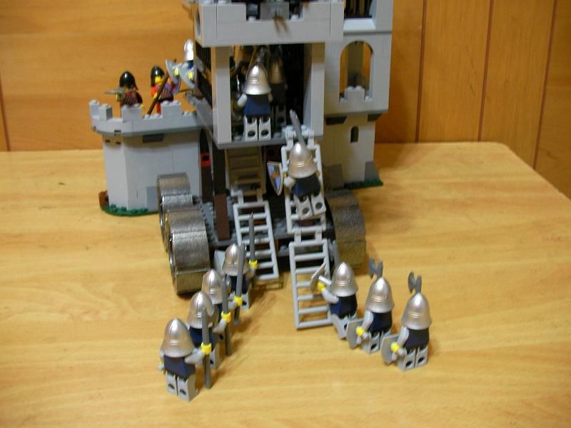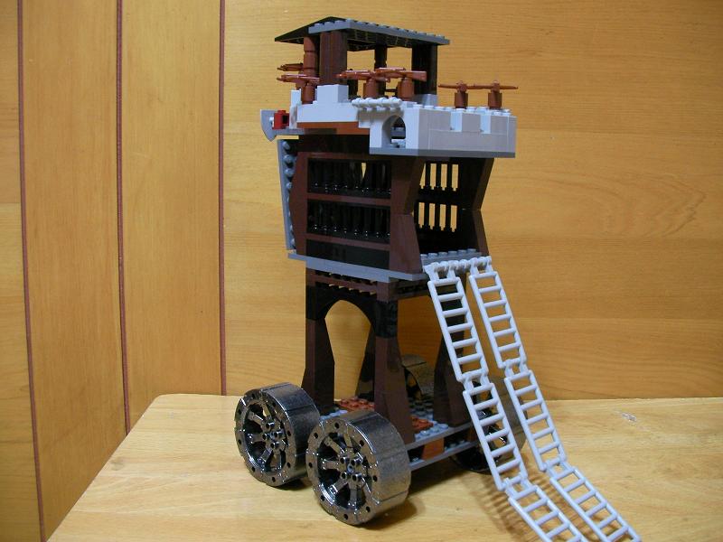 攻城塔車後方兩支梯子可將大量士兵迅速補充至儲兵層