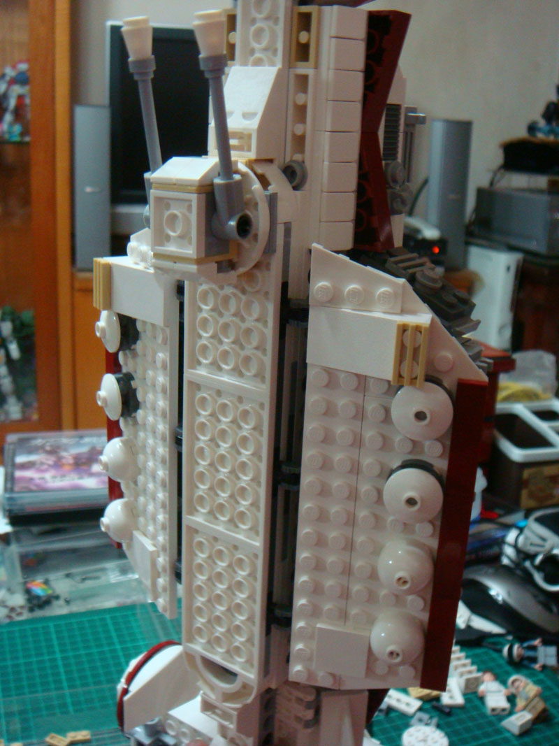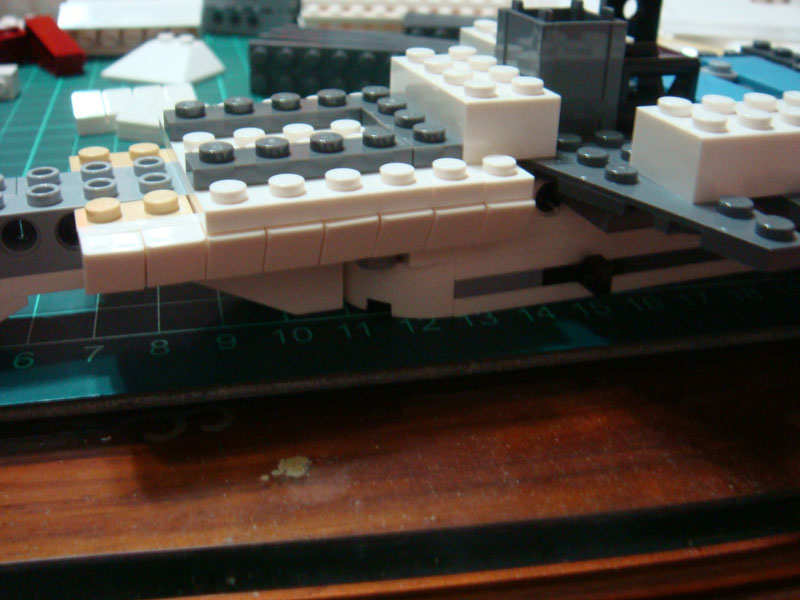 整體外觀用很多小零件修飾, 讓戰艦的外觀看起來更有機械感, 說實話外觀是組的很煩