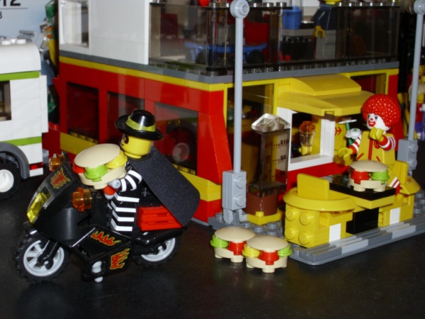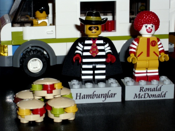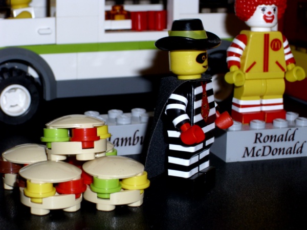 被發現了, 漢堡神偷便坐上漢堡神偷飛車號快速地逃去了。(好像在繞口令) 我看成 被發現了, 漢堡神偷偷大便在坐上漢堡神偷飛車號快速地逃去了。(來亂的) 不過你的漢堡好像是去跟海綿寶寶借的(猜想)