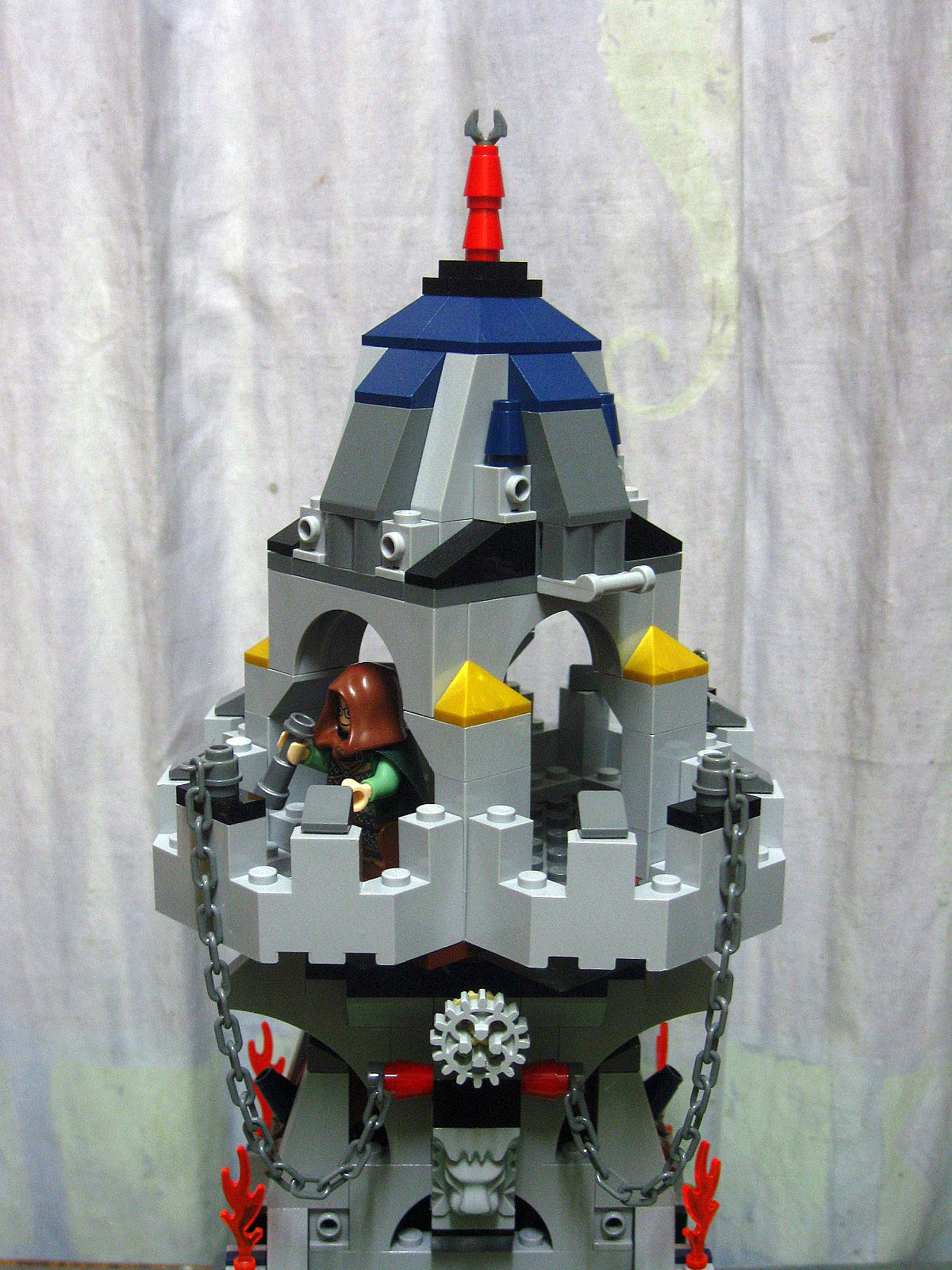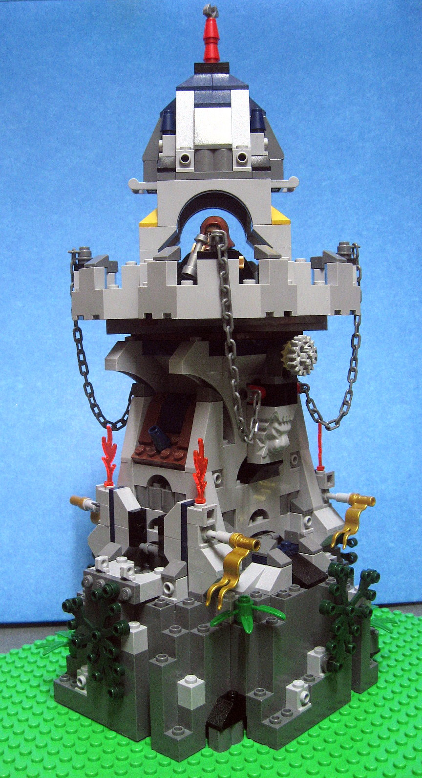 此作品命名為 孤岩台, 就是幻想中一座在岩石上的孤寂瞭望台, 規模不大但用了數百件零件, 大概也用了兩套7079 全部零件的三份之二.
